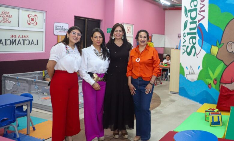 Pátzcuaro, Michoacán, 10 de abril de 2025.- La secretaria de Educación del Estado (SEE), Gaby Molina, celebra la creación de espacios para atender a niñas y niños, como son la ludoteca y la sala de lactancia en el nuevo Mercado Municipal de Pátzcuaro, esto como parte de una visión integral que coloca al centro a las familias, la infancia y los derechos de las mujeres.